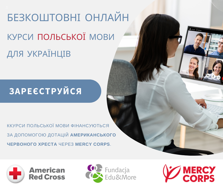 Запрошуємо українців, які приїхали до Польщі після 24.02 у зв'язку з війною в Україні, на безкоштовні онлайн курси польської мови для дорослих: