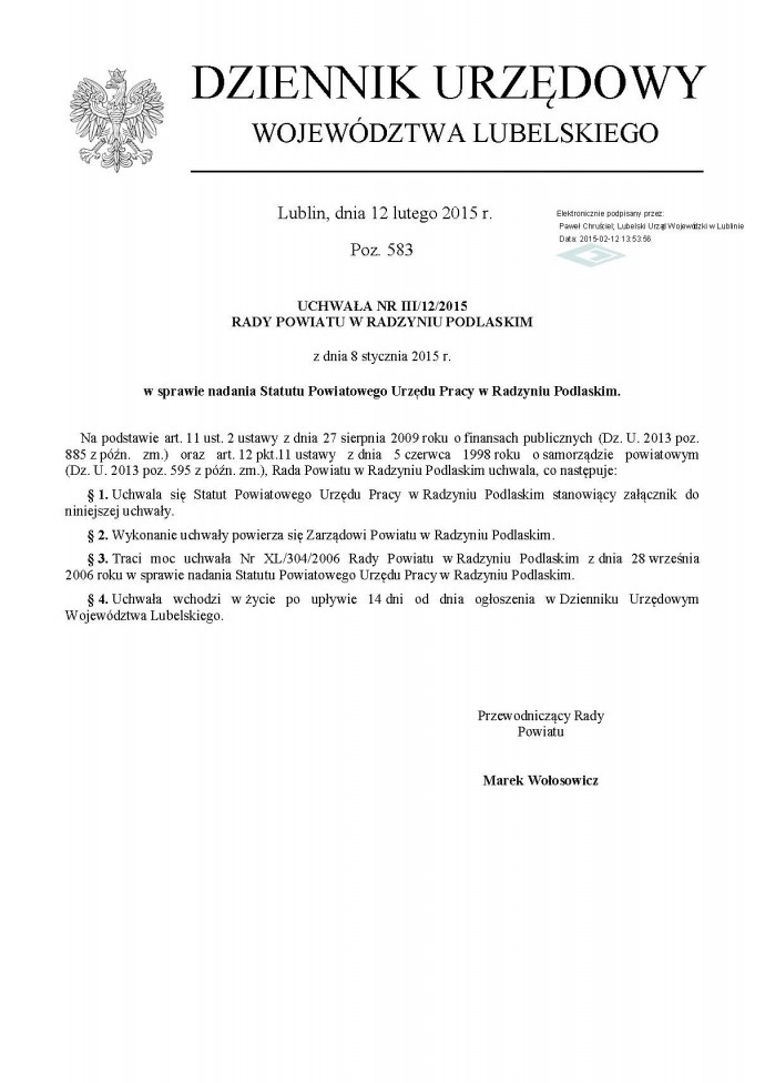Informacje o urzędzie - Powiatowy Urząd Pracy w Radzyniu Podlaskim