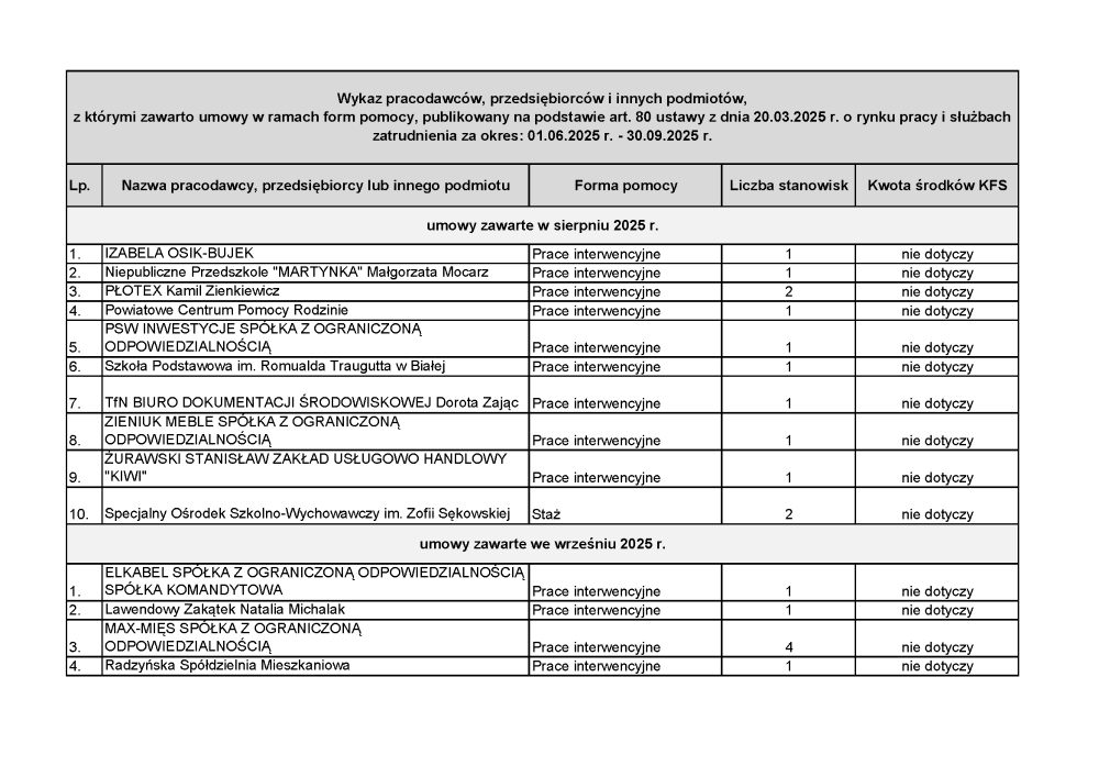 Wykaz zawartych umów - Powiatowy Urząd Pracy w Radzyniu Podlaskim